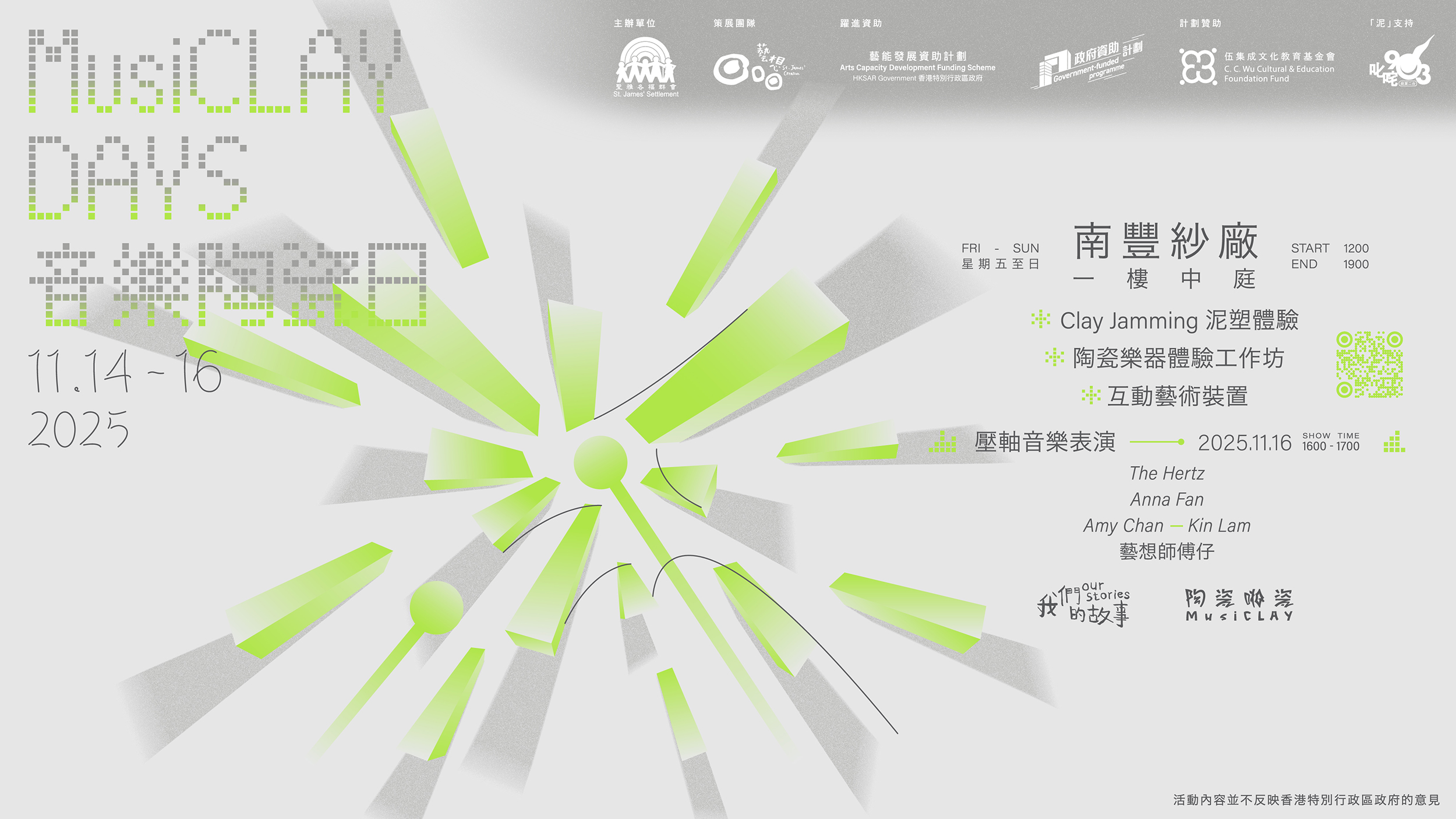 「陶瓷啪瓷 MusiCLAY」的靈感來自於爵士樂和流行音樂中常見的四拍節奏,探索音樂與陶瓷的奇妙交融。藝想陶藝師傅仔和四位來自不同領域(音樂、聲光電子、陶藝)的藝術家以陶瓷和聲音進行跨界別創作。在逾半年的探索與實驗中,定立了三大創作主題:「電陶宇宙」、「陶畫有聲」及「自然之聲」。作品將於 2024-25 舉行多次巡迴展覽。通過一系列活動及工作坊,期望讓觀眾一起「泥玩音樂 Play Music, Play Clay」,共同探索陶瓷與音樂的無限可能。